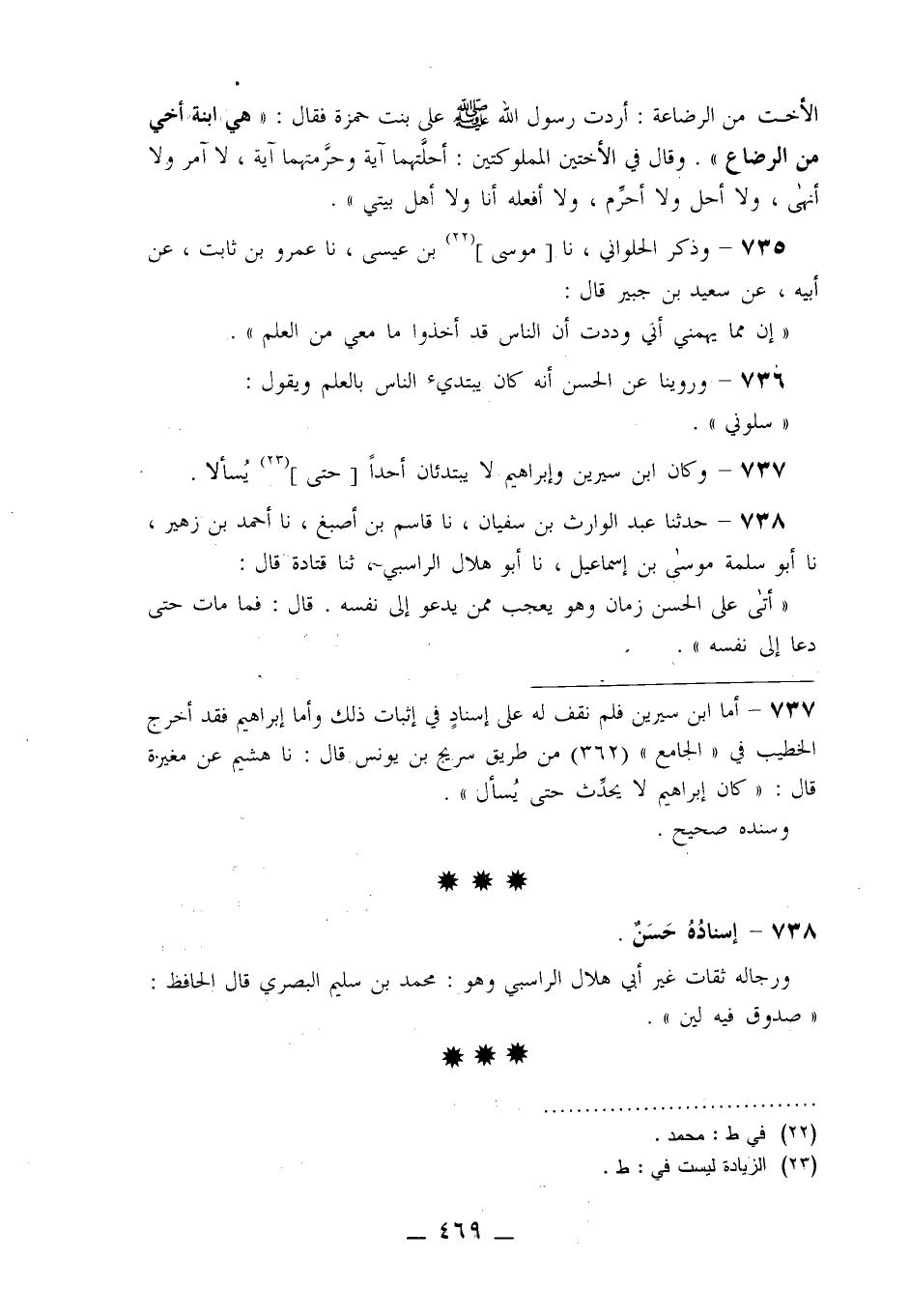 737 - «وَكَانَ ابْنُ سِيرِينَ، وَإِبْرَاهِيمُ» لَا يَبْتَدِئَانِ أَحَدًا حَتَّى يُسْأَلَا "