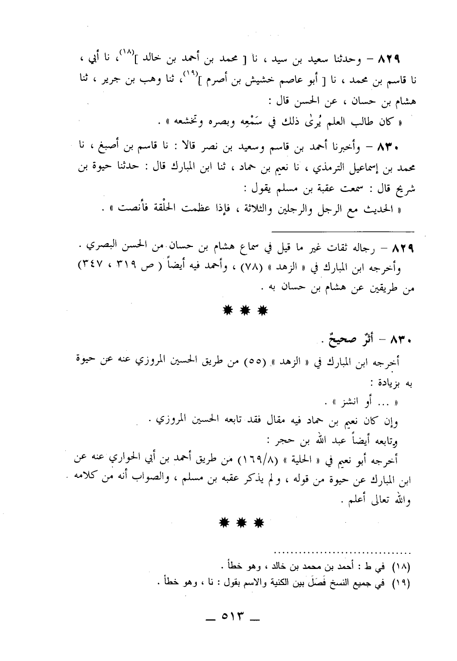 829 - وَحَدَّثَنَا سَعِيدُ بْنُ سَيِّدٍ، نا مُحَمَّدُ بْنُ أَحْمَدَ بْنِ خَالِدٍ، نا أَبِي، نا قَاسِمُ بْنُ مُحَمَّدٍ، نا أَبُو عَاصِمٍ خُشَيْشُ بْنُ أَصْرَمَ، ثنا وَهْبُ بْنُ جَرِيرٍ، ثنا هِشَامُ بْنُ حَسَّانَ، عَنِ الْحَسَنِ قَالَ: «كَانَ §طَالِبُ الْعِلْمِ يُرَى ذَلِكَ فِي سَمْعِهِ وَبَصَرِهِ وَتَخَشُّعِهِ»