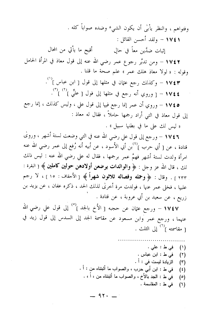 1747 - وَرَجَعَ عُثْمَانُ عَنْ حَجْبِهِ الْأَخِ بِالْجَدِّ إِلَى قَوْلِ عَلِيٍّ رَضِيَ اللَّهُ عَنْهُمَا، وَرَجَعَ عُمَرُ وَابْنُ مَسْعُودٍ عَنْ مُقَاسَمَةِ الْجَدِّ إِلَى السُّدُسِ إِلَى قَوْلِ زَيْدٍ فِي مُقَاسَمَتِهِ إِلَى الثُّلُثِ، -[921]-