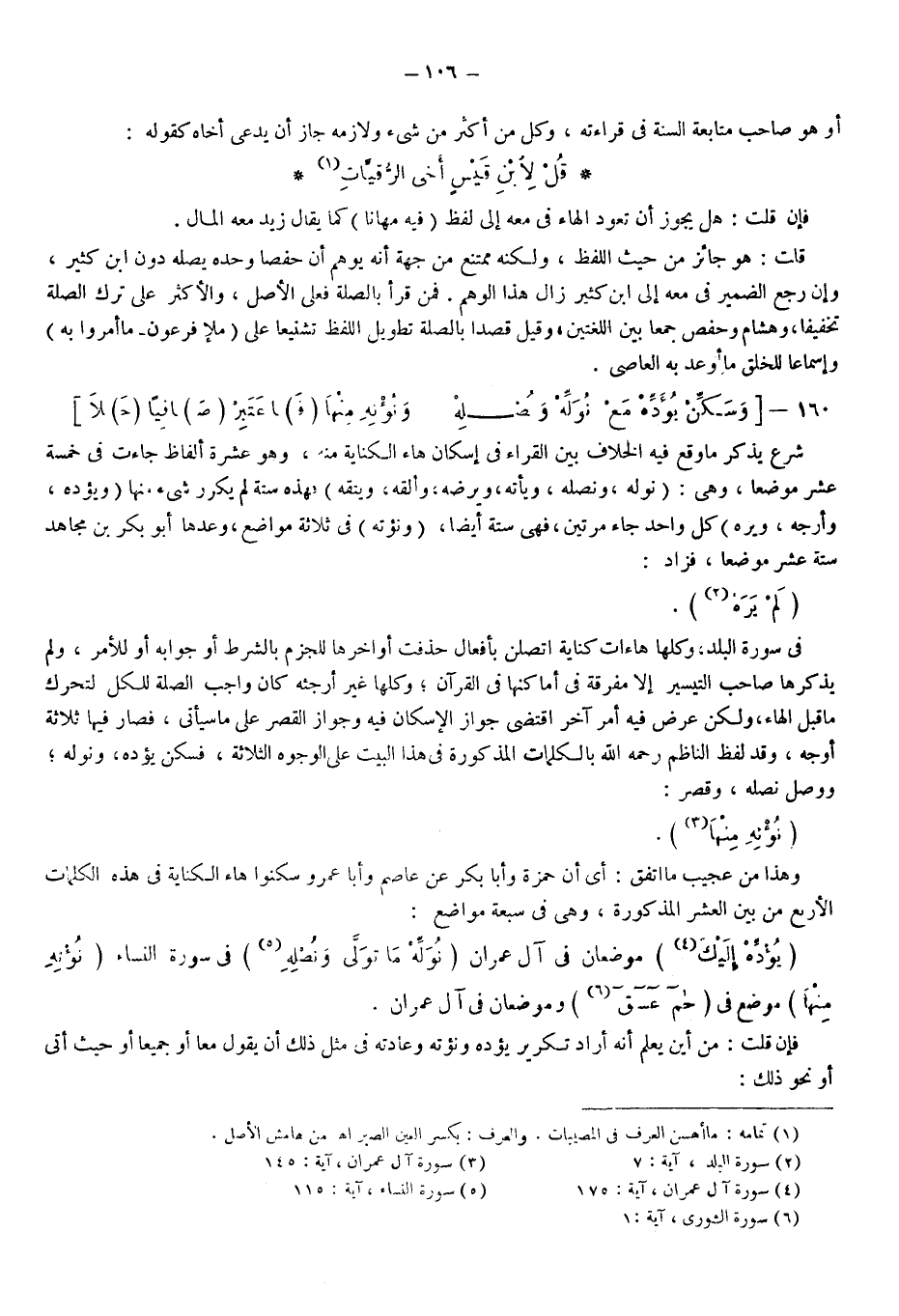 {يُؤَدِّهِ إِلَيْكَ} 4. موضعان في آل عمران، {نُوَلِّهِ مَا تَوَلَّى وَنُصْلِهِ} 5 في سورة النساء، {نُؤْتِهِ مِنْها} موضع في {حم، عسق} 6 وموضعان في آل عمران.