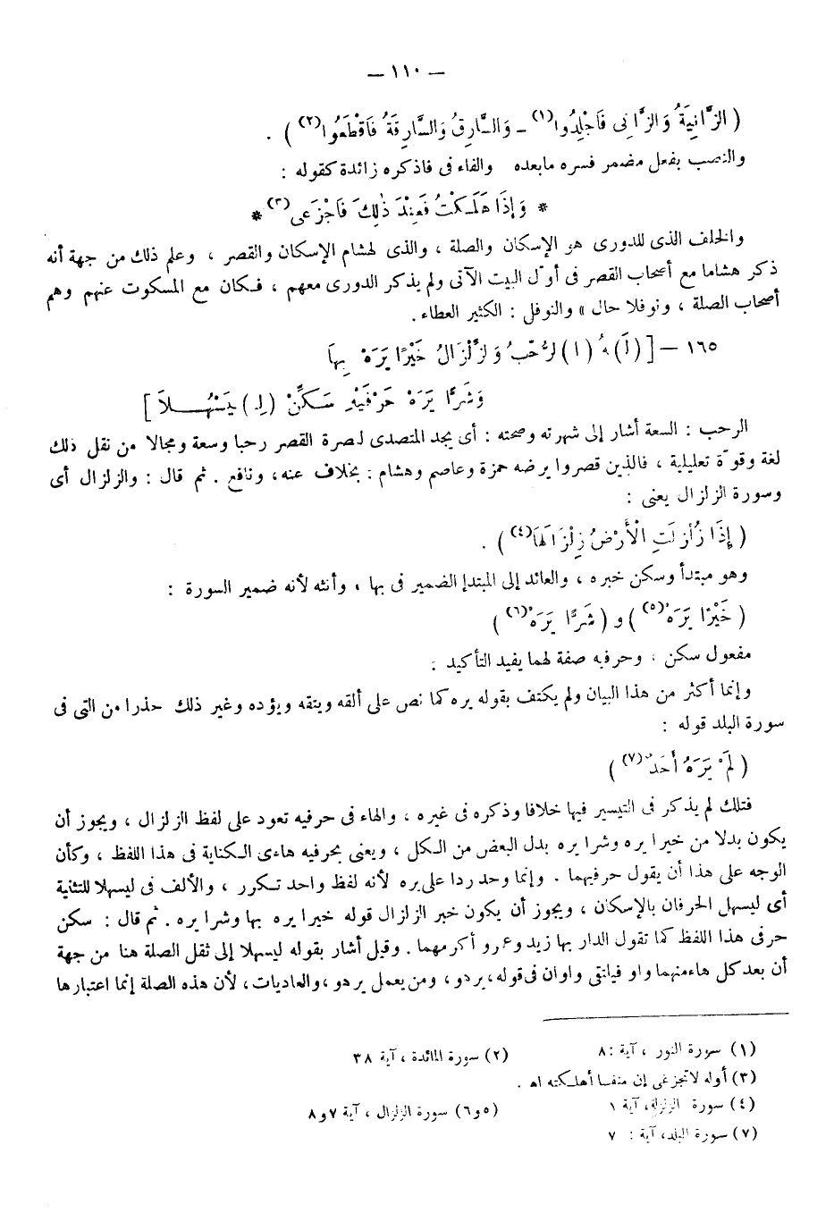وهو مبتدأ وسكن خبره والعائد إلى المبتدأ الضمير في بها وأنثه؛ لأنه ضمير السورة: {خَيْرًا يَرَهُ} 5 و {شَرًّا يَرَهُ} 6. مفعول سكن وحرفيه صفة لهما يفيد التأكيد.