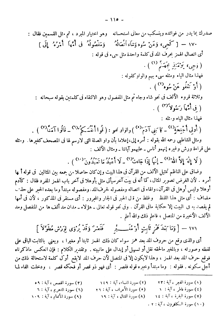 ومثال الألف: {لا إِلَهَ إِلَّا اللَّهُ} 8، {أَنَّهَا إِذَا جَاءَتْ} 9، {لا أَعْبُدُ مَا تَعْبُدُونَ} 10.
