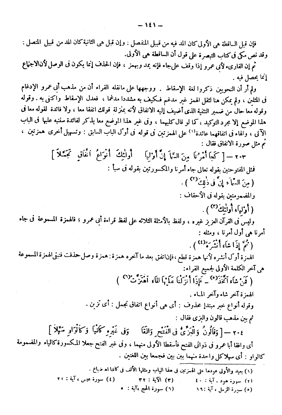 وليس في القرآن العزيز غيره، ولفظ بالأمثلة الثلاثة على لفظ قراءة أبي عمرو فالهمزة المسموعة في جاء أمرنا هي أول أمرنا ومثله: {ثُمَّ إِذَا شَاءَ أَنْشَرَهُ} 4.