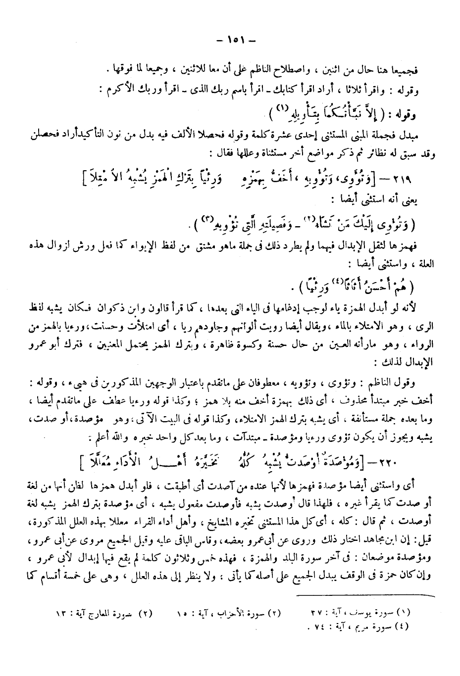 فهمزها لثقل الإبدال فيهما ولم يطرد ذلك في جملة ما هو مشتق من لفظ الإيواء كما فعل ورش لزوال هذه العلة واستثنى أيضا:
