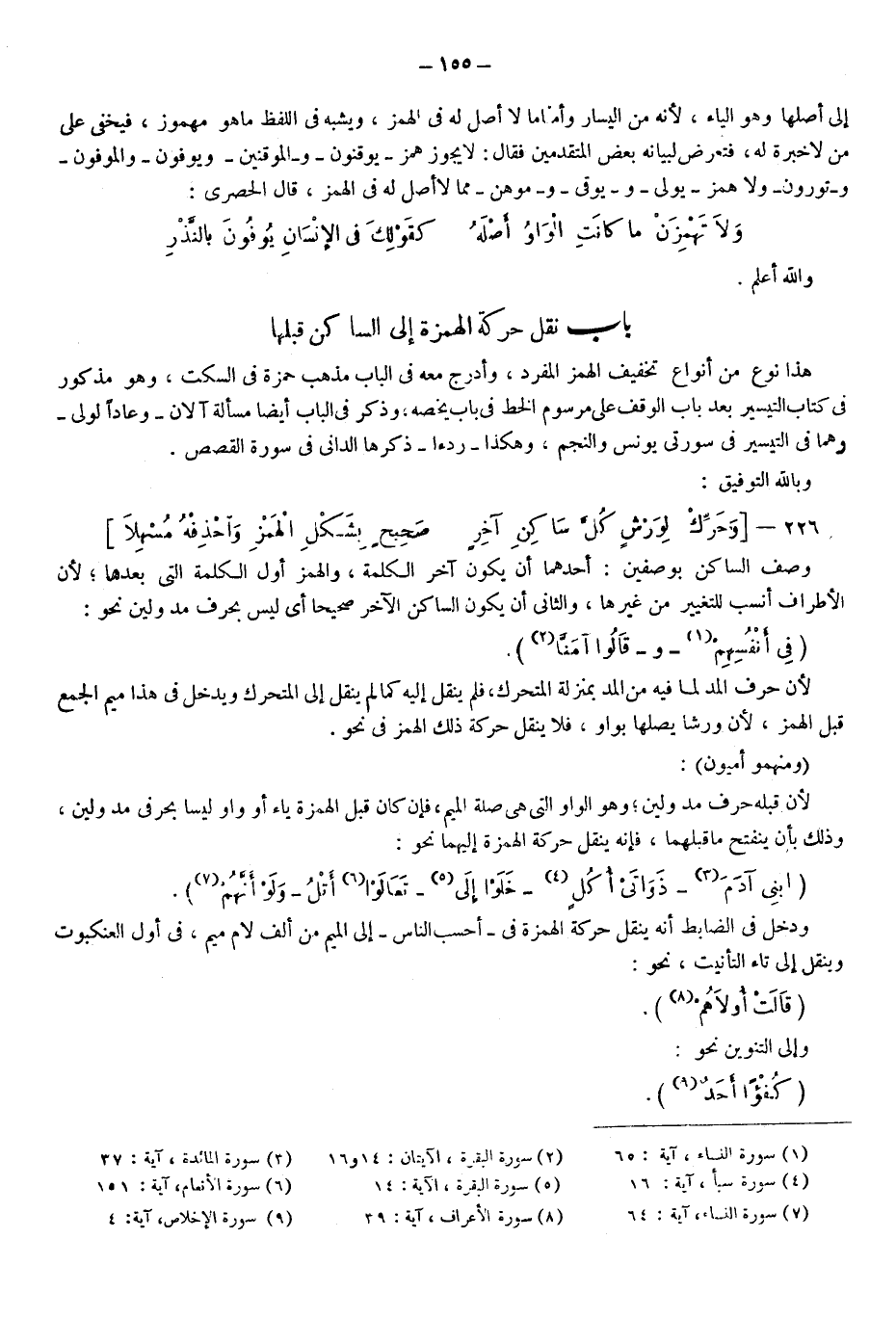 ودخل في الضابط أنه ينقل حركة الهمزة في: {أَحَسِبَ النَّاسُ} إلى الميم من ألف لام ميم في أول العنكبوت وينقل إلى تاء التأنيث نحو: {قَالَتْ أُولاهُمْ} 8.
