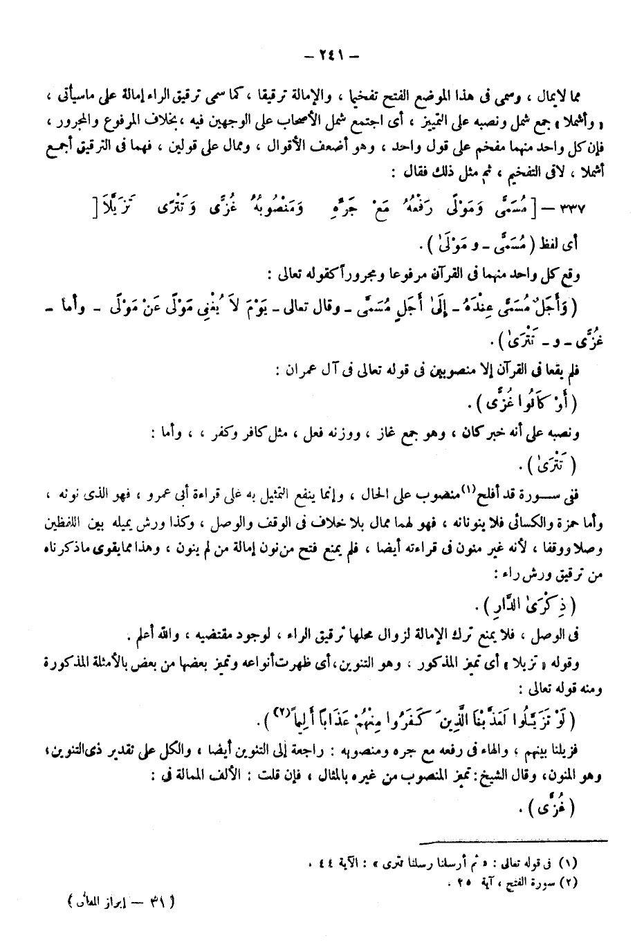 {وَأَجَلٌ مُسَمًّى عِنْدَهُ} ، {إِلَى أَجَلٍ مُسَمًّى} ، وقال تعالى: {يَوْمَ لا يُغْنِي مَوْلًى عَنْ مَوْلًى} ، "وأما" "غزى" و"تترى".