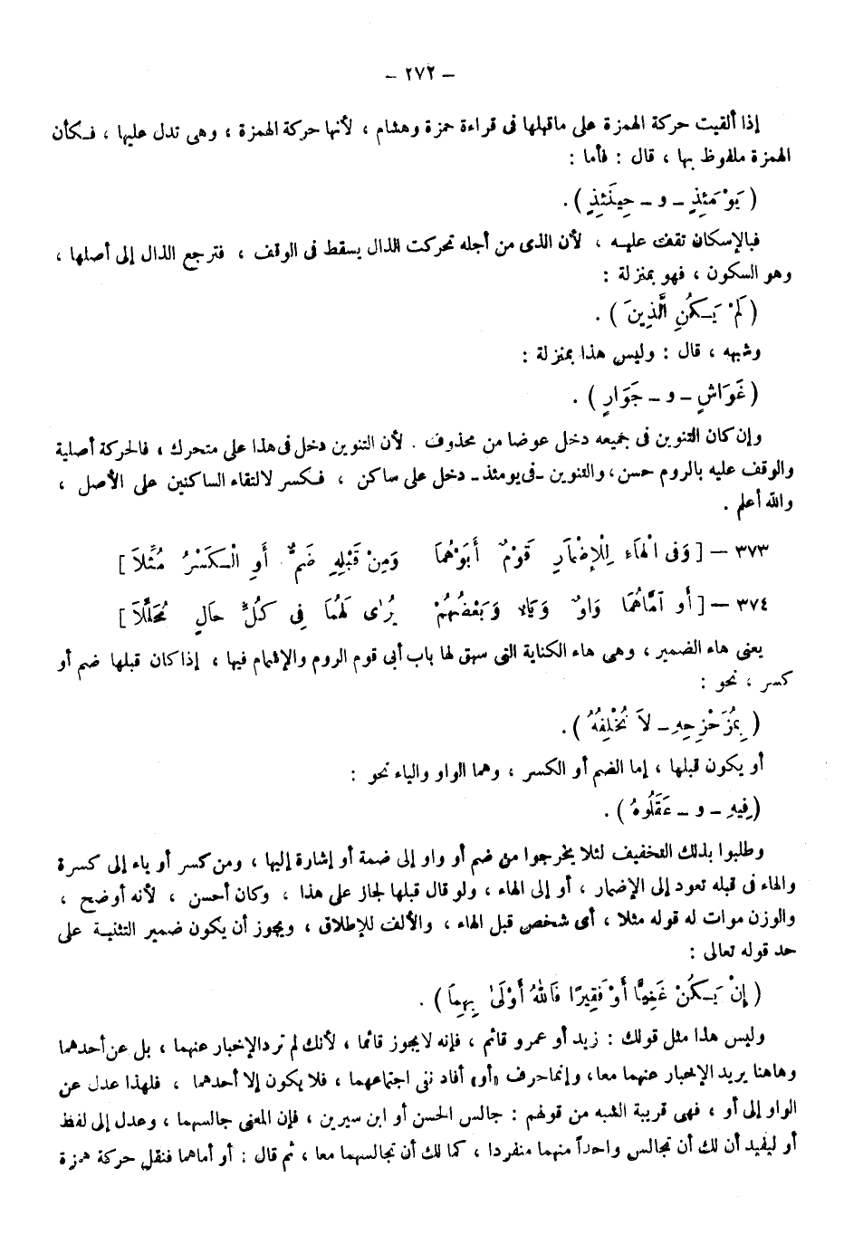 وطلبوا بذلك التخفيف؛ لئلا يخرجوا من ضم أو واو إلى ضمة أو إشارة إليها ومن كسر أو ياء إلى كسرة، والهاء في قبله تعود إلى الإضمار أو إلى الهاء ولو قال قبلها لجاز على هذا وكان أحسن؛ لأنه أوضح والوزن مُواتٍ له، قوله: مثِّلا أي شخّص قبل الهاء والألف للإطلاق، ويجوز أن يكون ضمير التثنية على حد قوله تعالى: {إِنْ يَكُنْ غَنِيًّا أَوْ فَقِيرًا فَاللَّهُ أَوْلَى بِهِمَا} .