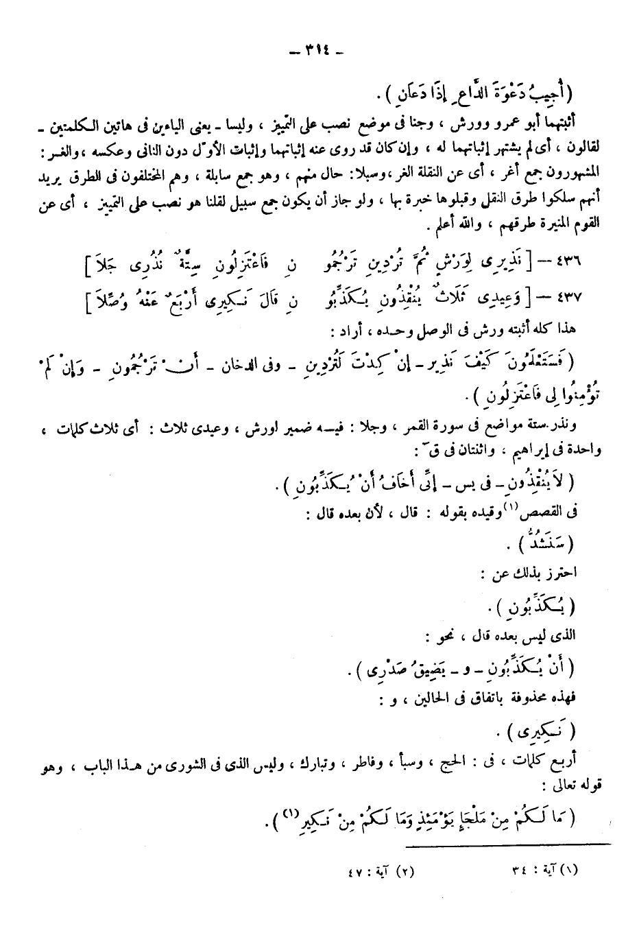 هذا كله أثبته ورش في الوصل وحده أراد: {فَسَتَعْلَمُونَ كَيْفَ نَذِيرِ} ، {إِنْ كِدْتَ لَتُرْدِينِ} ، وفي الدخان: {أَنْ تَرْجُمُونِ} ، {وَإِنْ لَمْ تُؤْمِنُوا لِي فَاعْتَزِلُونِ} .