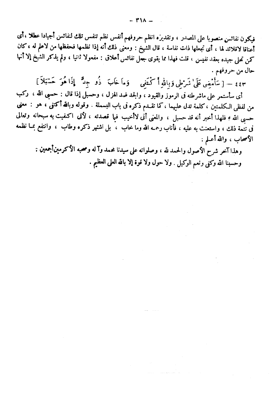 وهذا آخر شرح الأصول والحمد لله وصلواته على سيدنا محمد وآله وصحبه الأكرمين أجمعين: