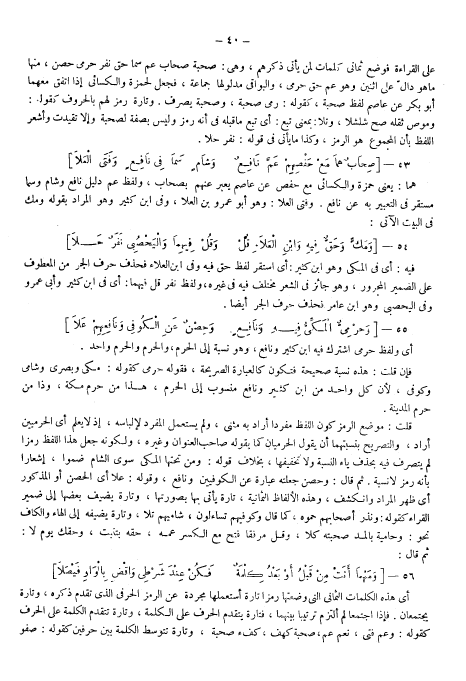 صِحَابٌ هَمَا مَعْ حَفْصِهِمْ عَمَّ نَافِعٌ ... وَشَامٍ سَمَا فِي نَافِعٍ وَفَتَى الْعَلاَ