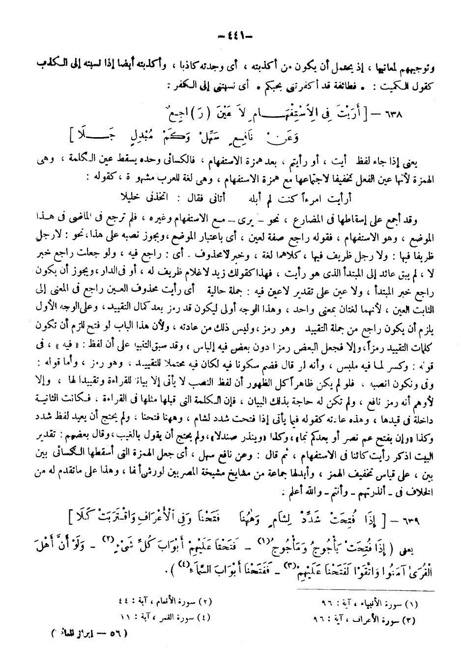 أَرَيْتَ فِي الِاسْتِفْهَامِ لا عَيْنَ "رَ"اجِعٌ ... وَعَنْ نَافِعٍ سَهِّلْ وَكَمْ مُبْدِلٍ جَلا