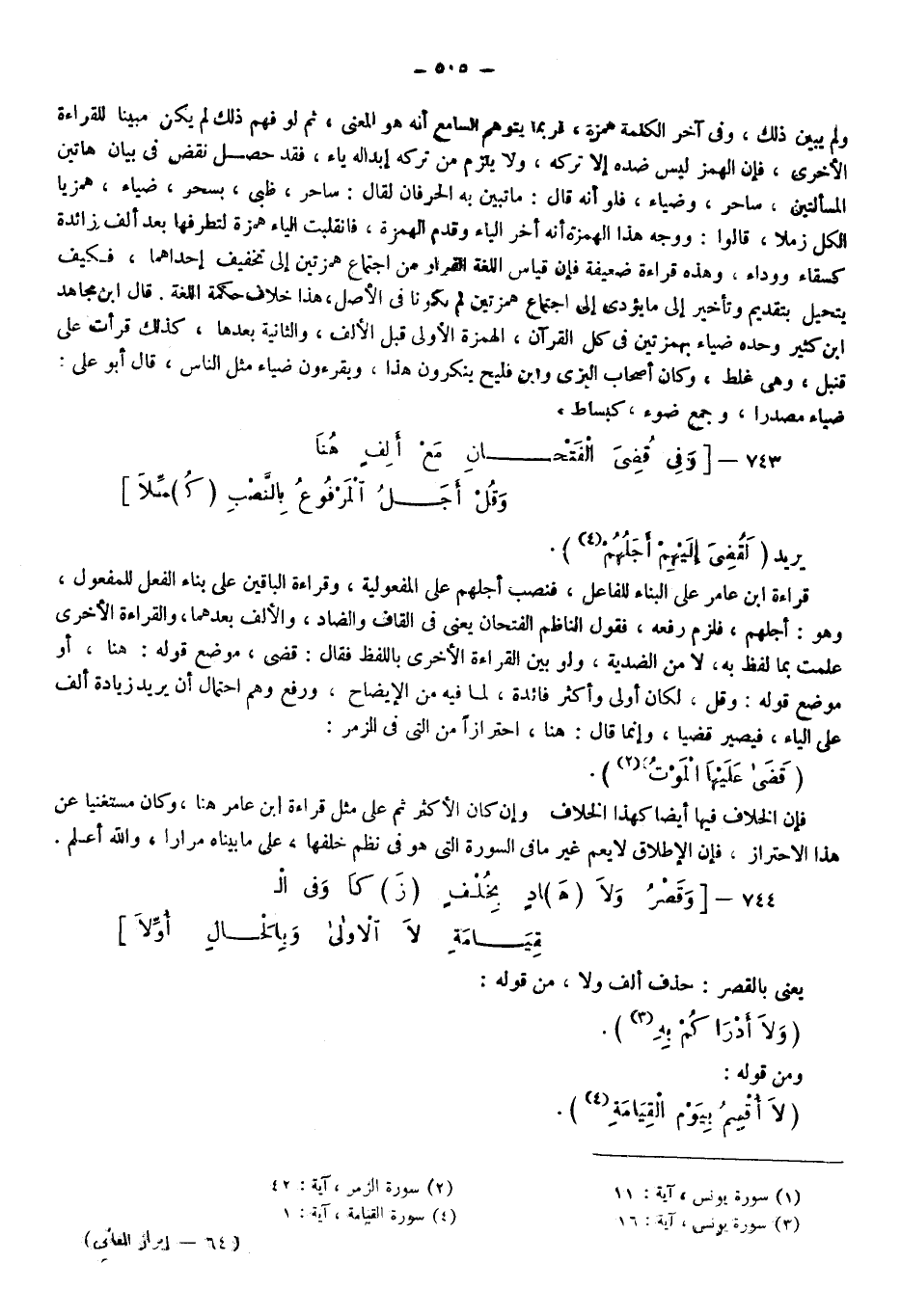 يعني بالقصر: حذف ألف ولا من قوله: {وَلا أَدْرَاكُمْ بِهِ} 3، ومن قوله: {لا أُقْسِمُ بِيَوْمِ الْقِيَامَةِ} 4.
