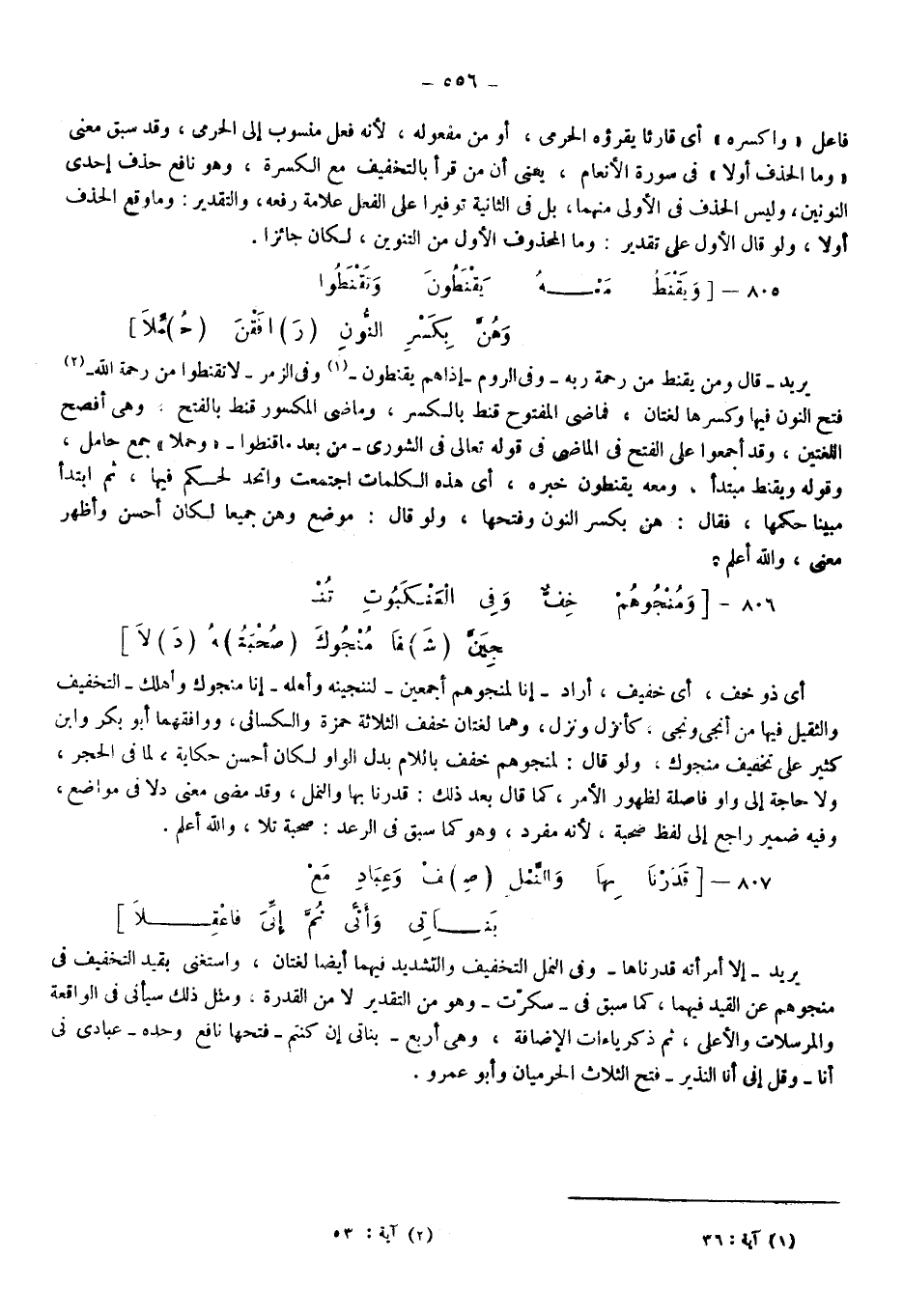 يريد: {إِلَّا امْرَأَتَهُ قَدَّرْنَاهَا} ، وفي النمل التخفيف والتشديد فيهما أيضا لغتان، واستغنى بقيد التخفيف في "منجوهم" عن القيد فيهما كما سبق في"سكرت" وهو من التقدير: لا من القدرة، ومثل ذلك سيأتي في الواقعة والمرسلات والأعلى، ثم ذكر ياءات الإضافة وهي أربع: "بَنَاتِيَ إِنْ كُنْتُمْ" فتحها نافع وحده، "عِبَادِيَ أَنِّيَ أَنَا"، {وَقُلْ إِنِّيَ أَنَا النَّذِيرُ} فتح الثلاث الحرميان وأبو عمرو.