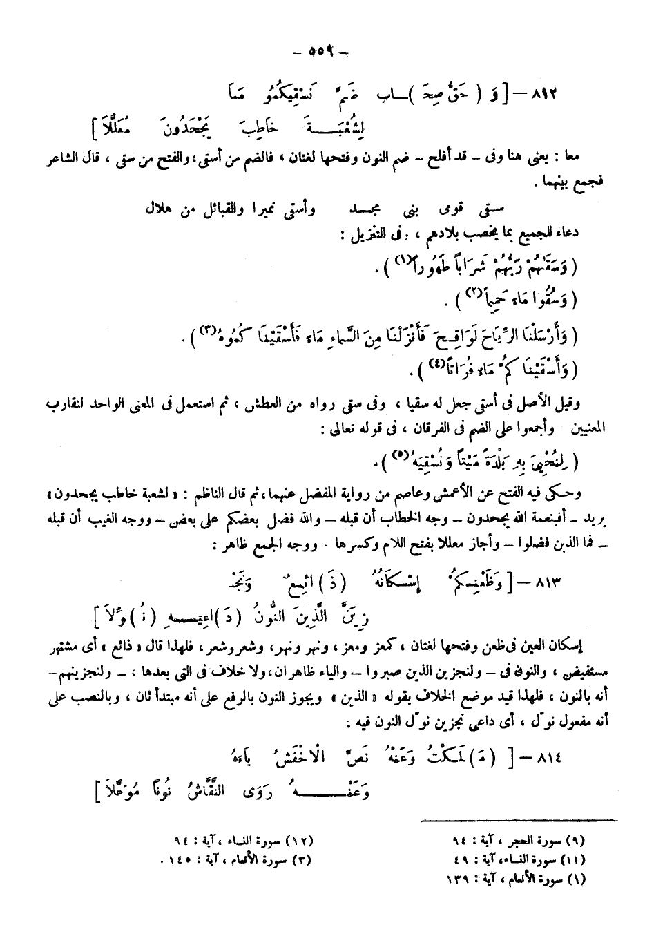 وحكي فيه الفتح عن الأعمش وعاصم من رواية المفضل عنهما، ثم قال الناظم لشعبة خاطب يجحدون يريد: {أَفَبِنِعْمَةِ اللَّهِ يَجْحَدُونَ} وجه الخطاب أن قبله: {وَاللَّهُ فَضَّلَ بَعْضَكُمْ عَلَى بَعْضٍ} ووجه الغيب أن قبله: {فَمَا الَّذِينَ فُضِّلُوا} ، وأجاز معللا بفتح اللام وكسرها، ووجه الجمع ظاهر.