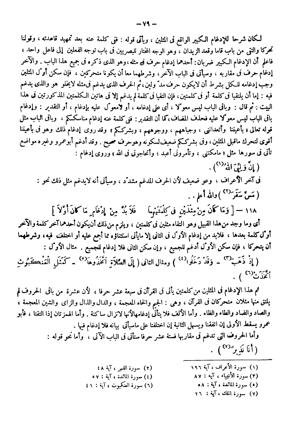 وأما الحروف التي تدغم في مقاربها فستة عشر حرفا ستأتي في الباب الآتي وأما نحو قوله: {أَنَا نَذِيرٌ} 7.