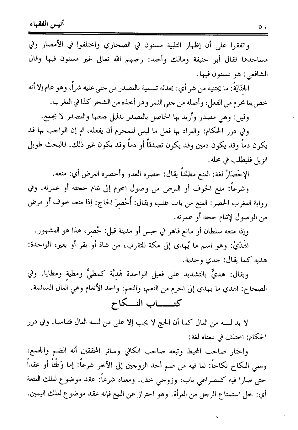 كتاب انيس الفقهاء في تعريفات الألفاظ المتداولة بين الفقهاء