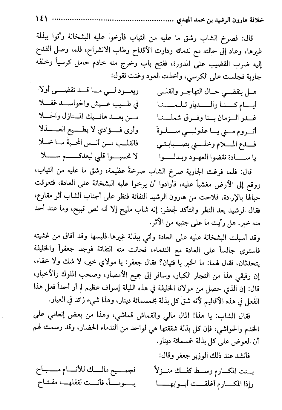 فأنشد عند ذلك الوزير جعفر وقال: