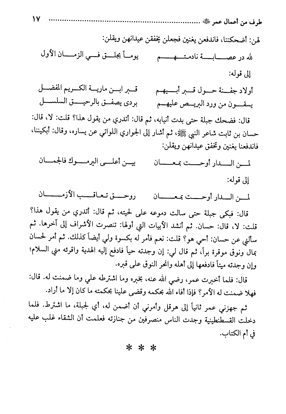 ثم جهزني عمر ثانياً إلى هرقل وأمرني أن أضمن له، أي لجبلة، ما اشترط. فلما دخلت القسطنطينية وجدت الناس منصرفين من جنازته فعلمت أن الشقاء غلب عليه في أم الكتاب.