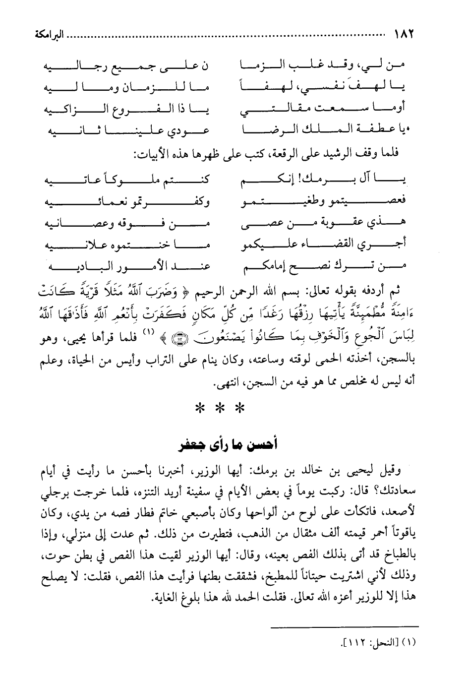 يا آل برمك! إنكم ... كنتم ملوكاً عاتيه