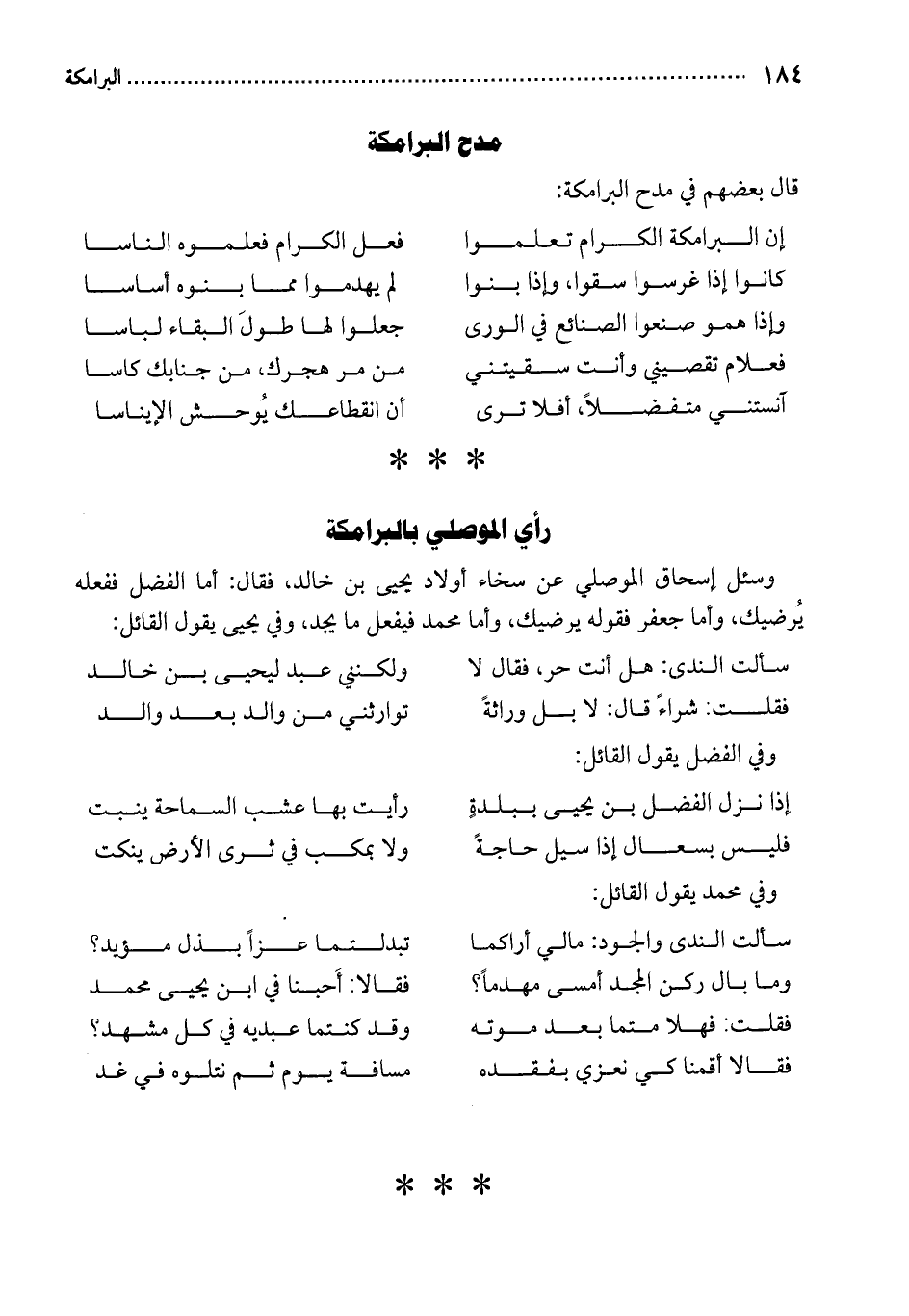 إن البرامكة الكرام تعلموا ... فعل الكرام فعلموه الناسا