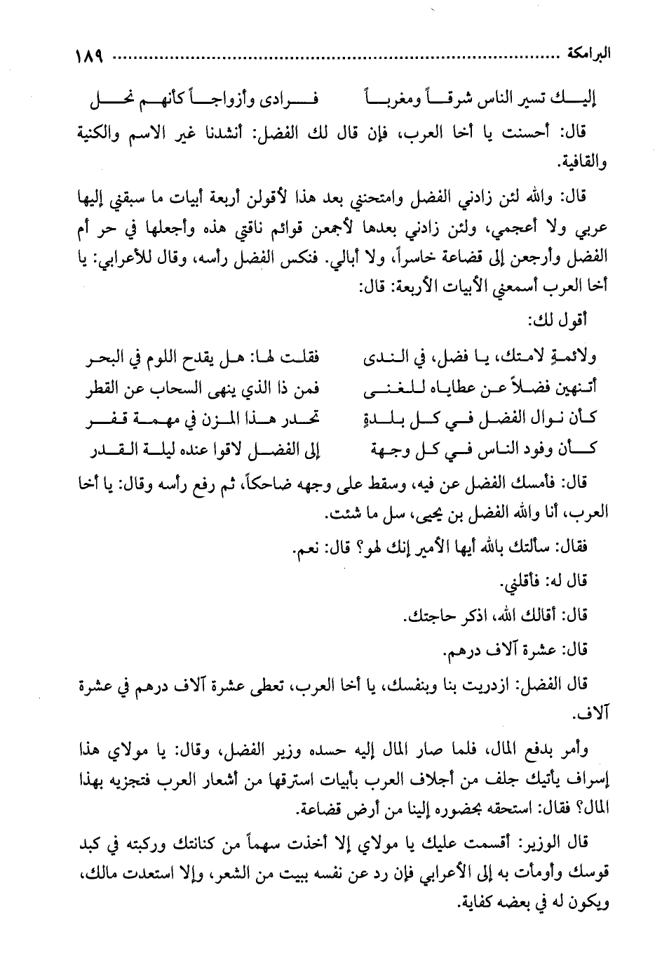 قال الفضل: ازدريت بنا وبنفسك، يا أخا العرب، تعطى عشرة آلاف درهم في عشرة آلاف.