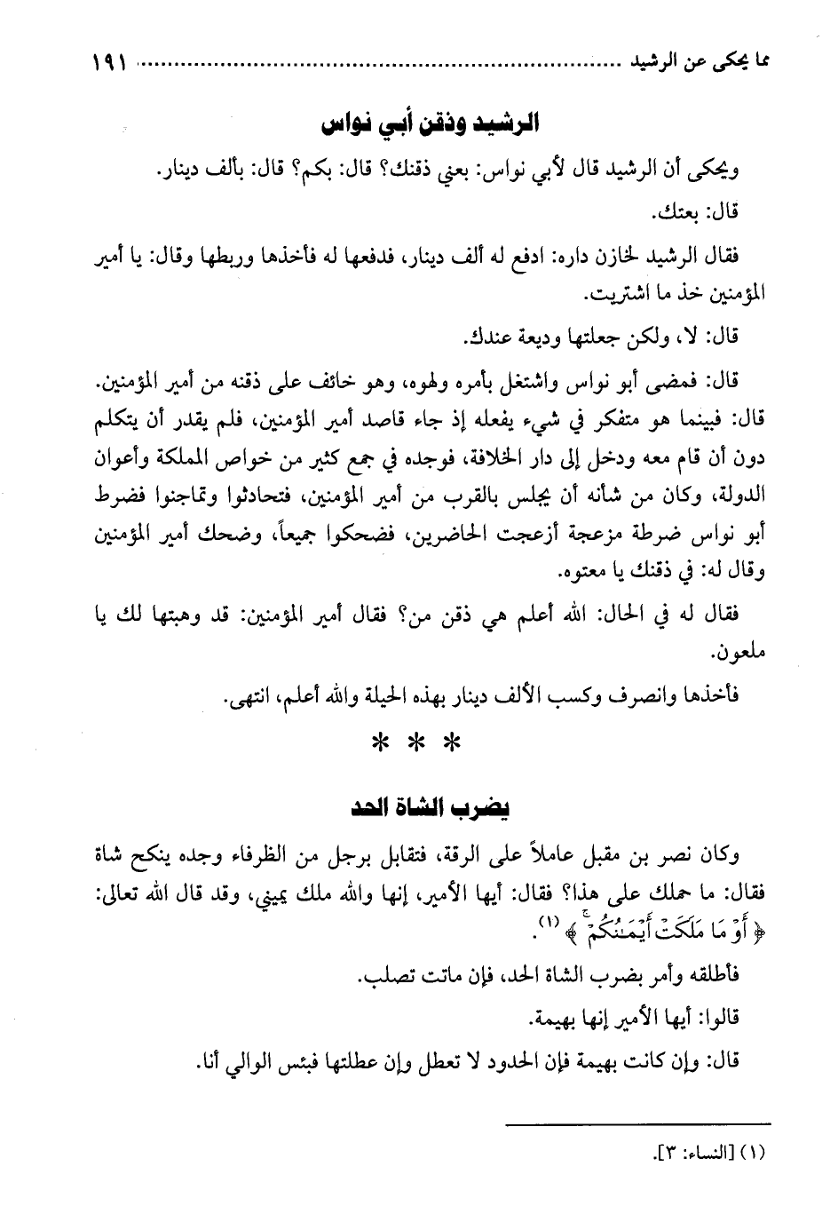 ويحكى أن الرشيد قال لأبي نواس: بعني ذقنك؟ قال: بكم؟ قال: بألف دينار.