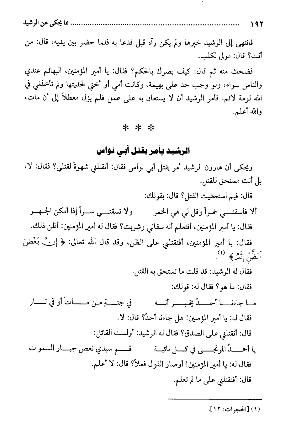 قال: أتقتلني على الصدق؟ فقال له الرشيد: أولست القائل: