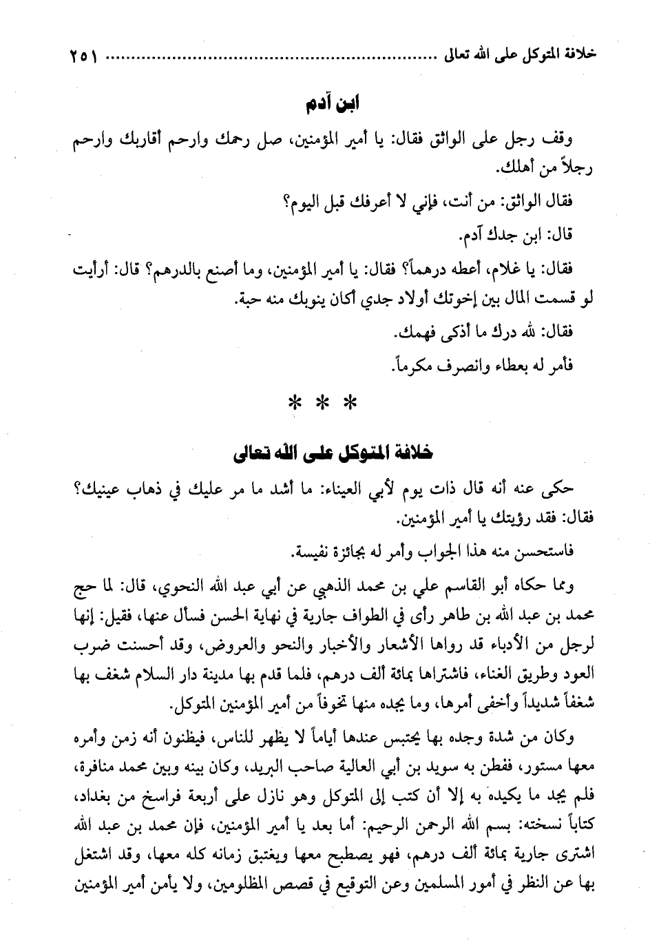ووقف رجل على الواثق فقال: يا أمير المؤمنين، صل رحمك وارحم أقاربك وارحم رجلاً من أهلك.