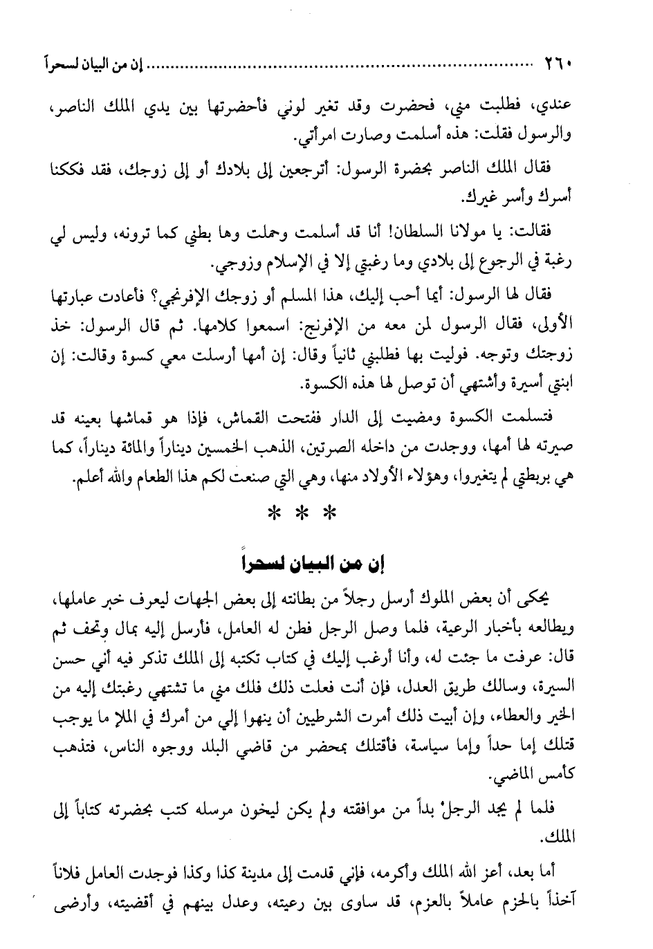 فقال الملك الناصر بحضرة الرسول: أترجعين إلى بلادك أو إلى زوجك، فقد فككنا أسرك وأسر غيرك.
