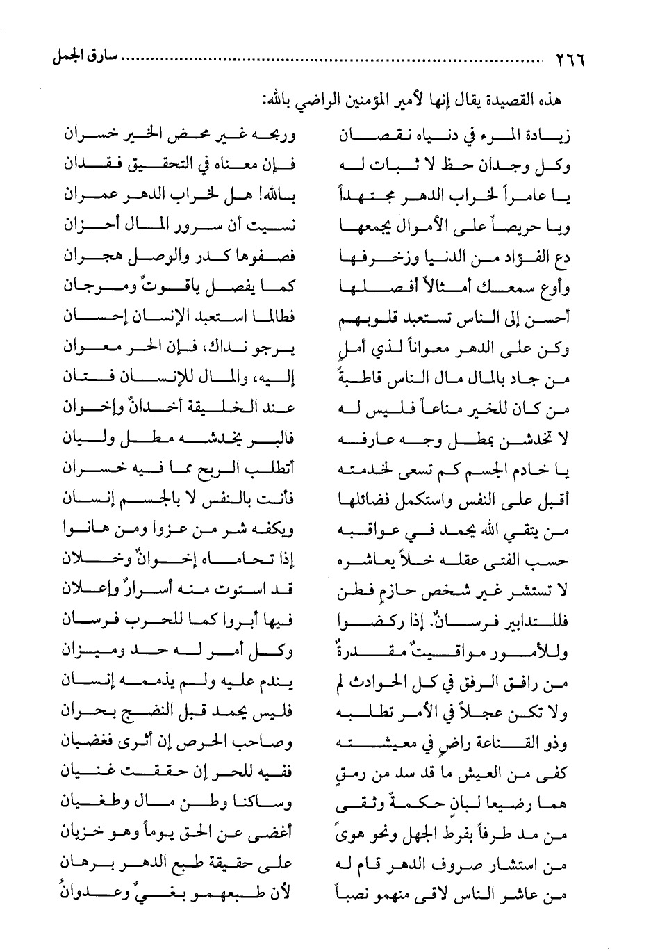 هذه القصيدة يقال إنها لأمير المؤمنين الراضي بالله