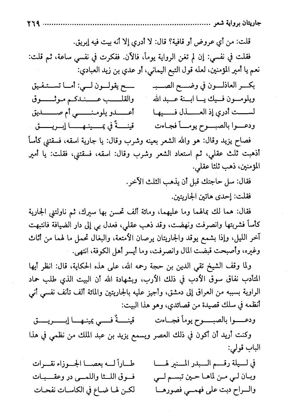 قلت: من أي عروض أو قافية؟ قال: لا أدري إلا أنه بيت فيه إبريق.