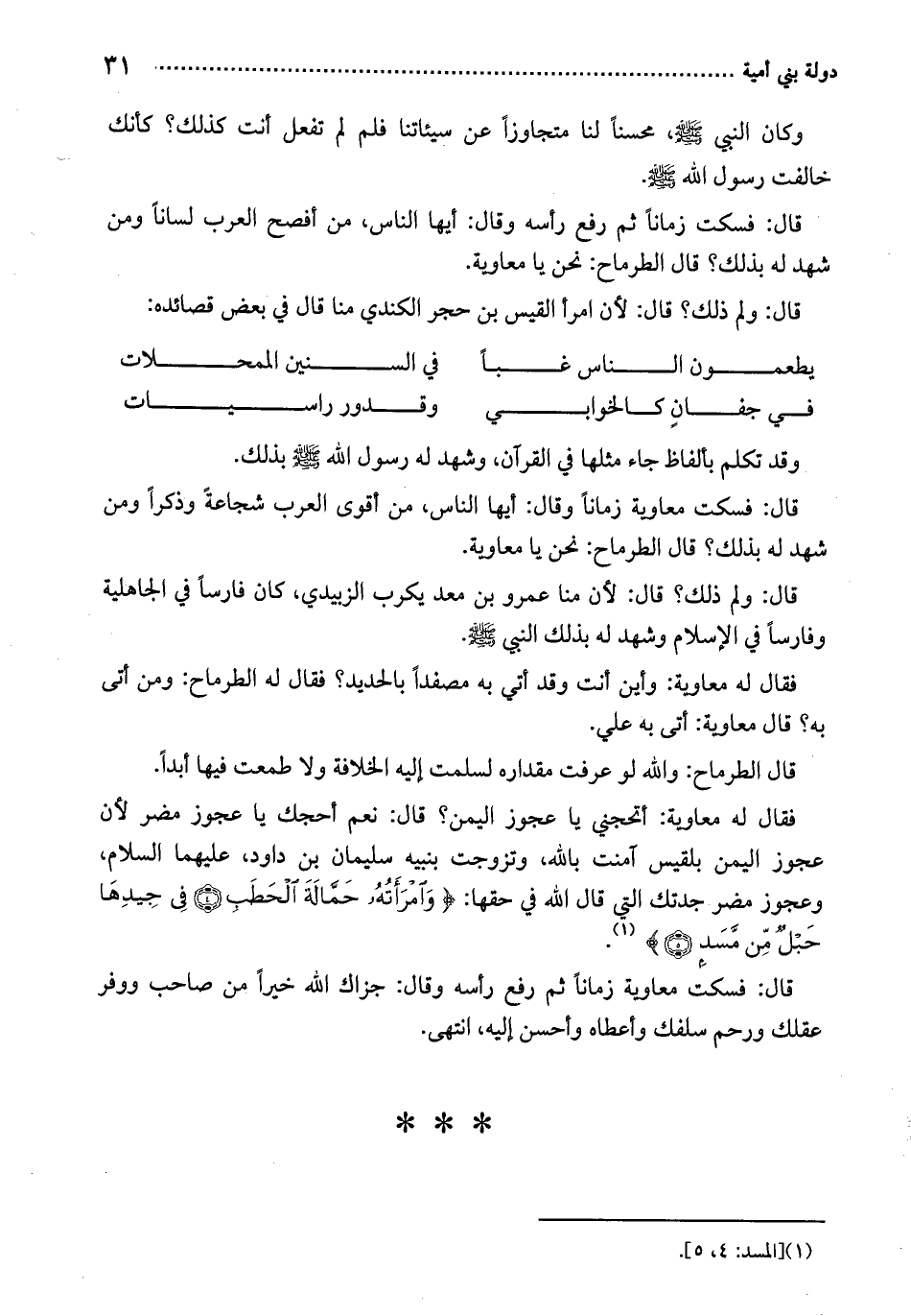 قال: فسكت زماناً ثم رفع رأسه وقال: أيها الناس، من أفصح العرب لساناً ومن شهد له بذلك؟ قال الطرماح: نحن يا معاوية.
