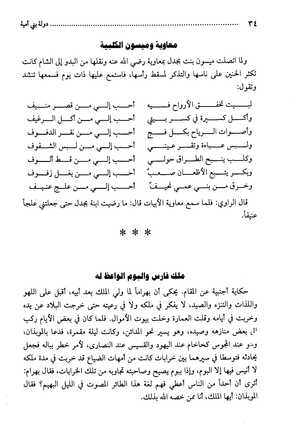 قال الراوي: فلما سمع معاوية الأبيات قال: ما رضيت ابنة بحدل حتى جعلتني علجاً عنيفاً.