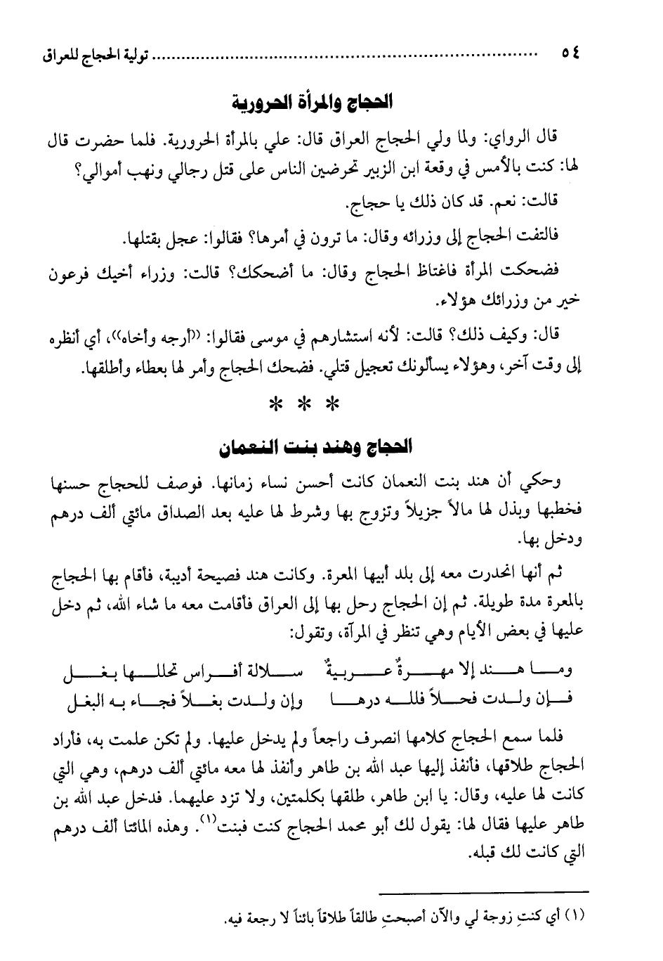 وحكي أن هند بنت النعمان كانت أحسن نساء زمانها. فوصف للحجاج حسنها فخطبها وبذل لها مالاً جزيلاً وتزوج بها وشرط لها عليه بعد الصداق مائتي ألف درهم ودخل بها.