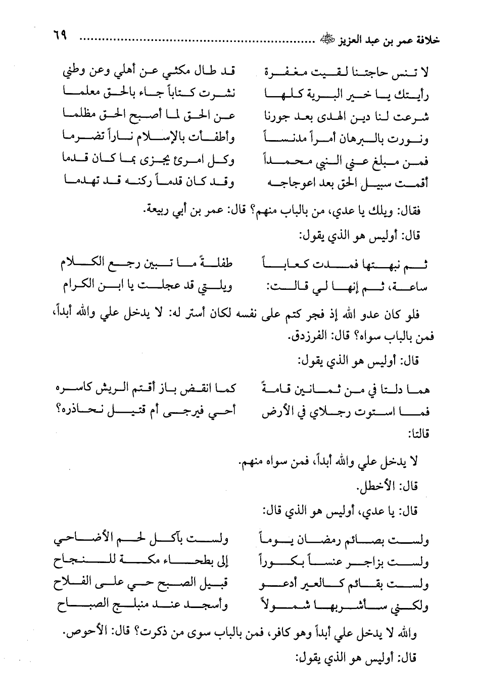 فقال: ويلك يا عدي، من بالباب منهم؟ قال: عمر بن أبي ربيعة.