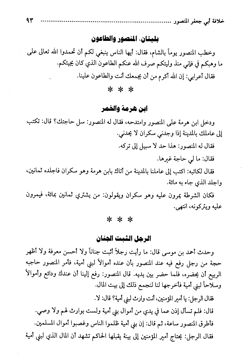 فأطرق المنصور ساعة، ثم قال: إن بني أمية ظلموا الناس وغصبوا أموال المسلمين.