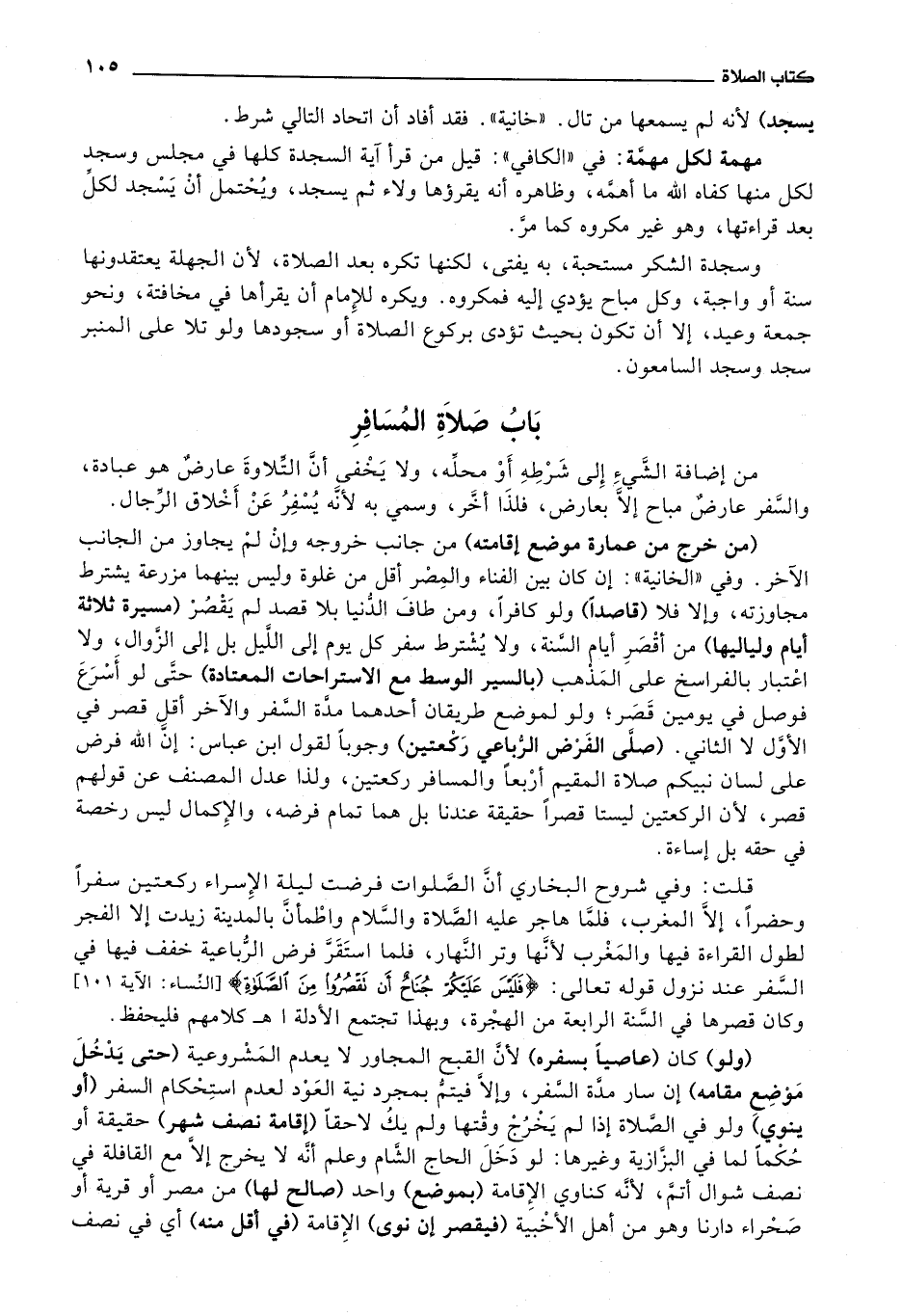 باب: صلاة المسافر من إضافة الشئ إلى شرطه