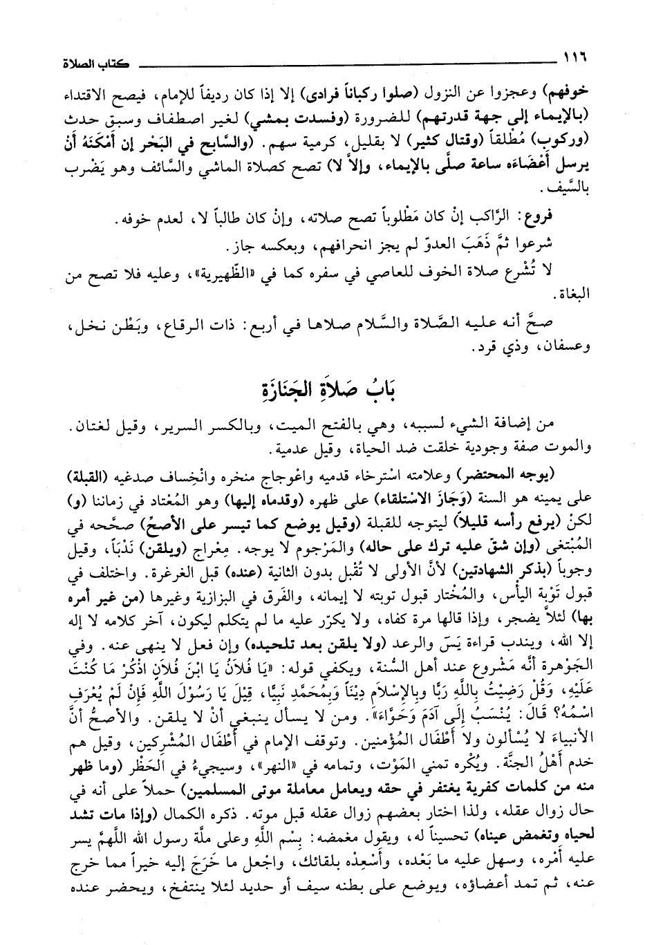 خوفهم) وعجزوا عن النزول (صلوا ركبانا فرادى) إلا إذا كان رديفا للامام، فيصح الاقتداء (بالايماء إلى جهة قدرتهم) للضرورة (وفسدت بمشي) لغير اصطفاف وسبق حدث (وركوب) مطلقا (وقتال