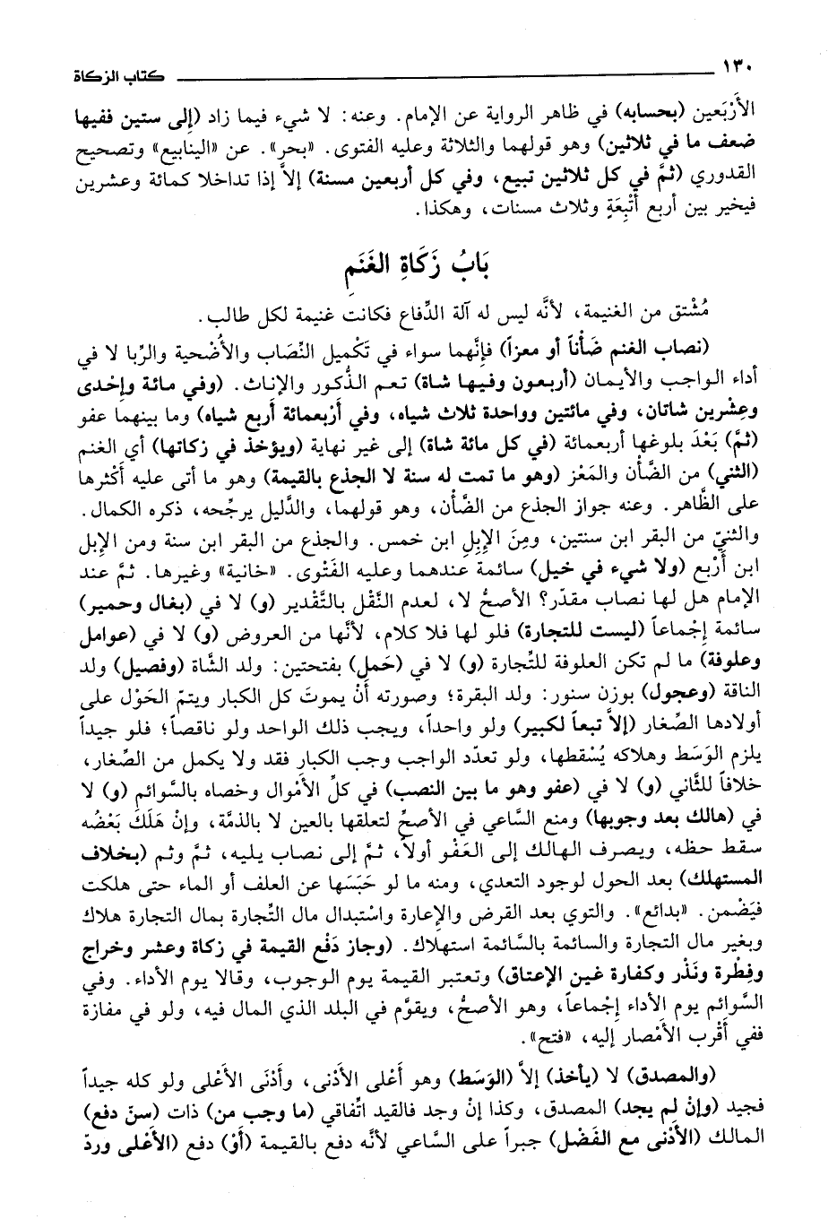 باب زكاة الغنم مشتق من الغنيمة، لانه ليس له آلة الدفاع فكانت غنيمة لكل طالب (نصاب الغنم ضأنا أو معزا) فإنهما سواء في تكميل النصاب والاضحية والربا لا في أداء الواجب والايمان (أربعون