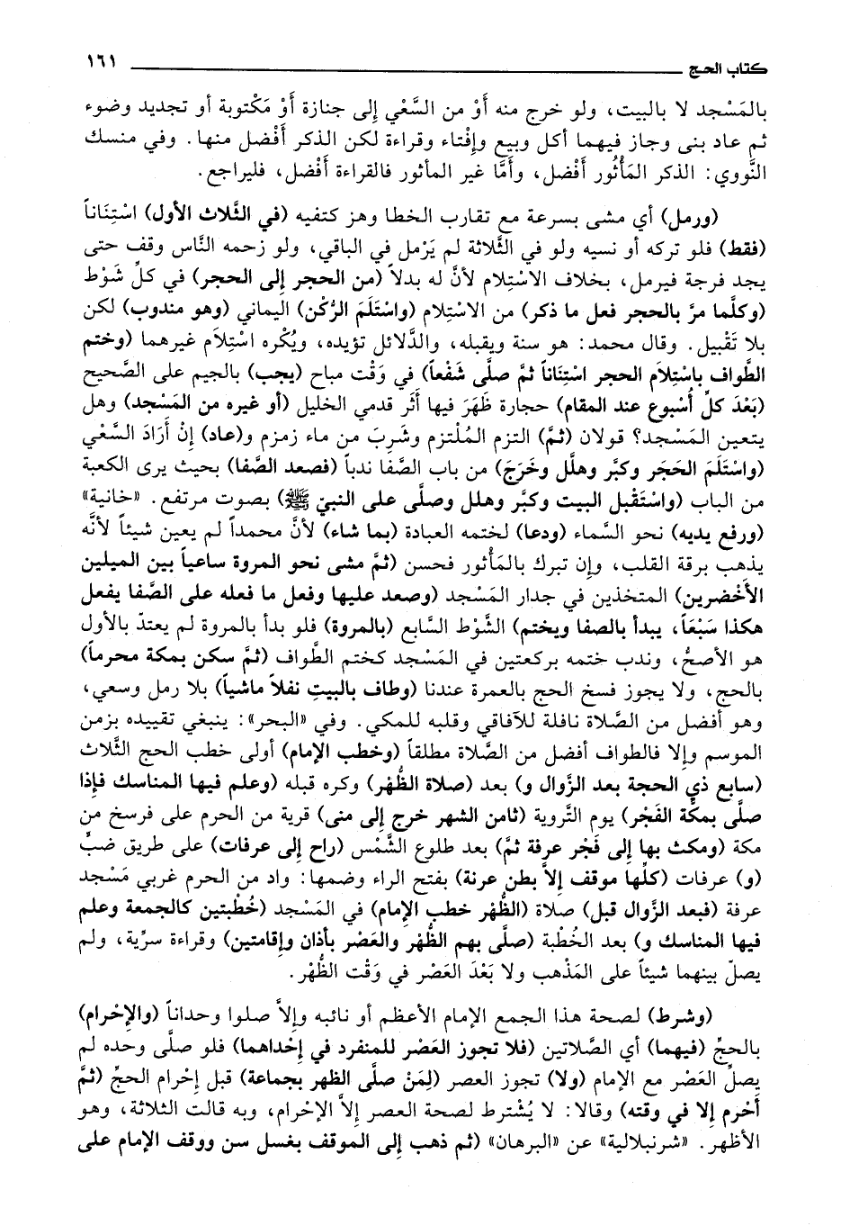 الامام الاعظم أو نائبه وإلا صلوا وحدانا (والاحرام) بالحج (فيهما) أي الصلاتين (فلا تجوز العصر للمنفرد في إحداهما) فلو صلى وحده لم يصل العصر مع الامام (ولا) تجوز العصر (لمن صلى الظهر بجماعة) قبل إحرام الحج (ثم أحرم إلا في وقته) وقالا: لا يشترط لصحة العصر إلا الاحرام، وبه قالت الثلاثة،
