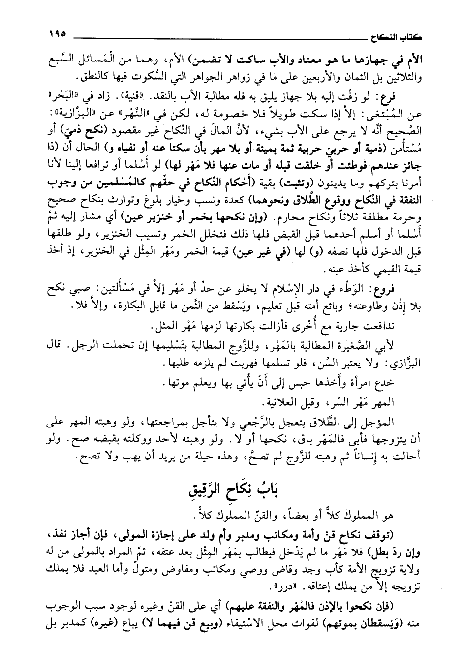 باب نكاح الرقيق هو المملوك كلا أو بعضا،