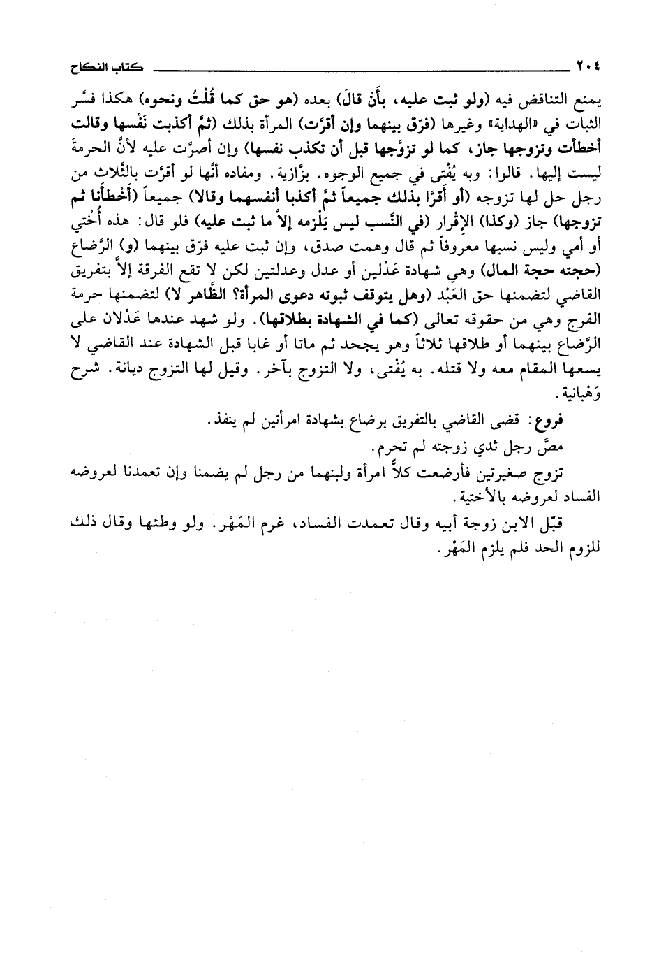 فروع: قضى القاضي بالتفريق برضاع بشهادة امرأتين لم ينفذ.