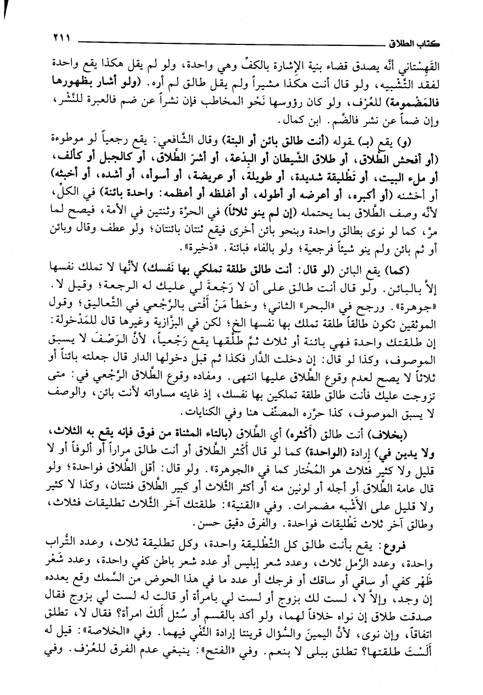 فروع: يقع بأنت طالق كل التطليقة واحدة، وكل تطليقة ثلاث، وعدد التراب واحدة، وعدد الرمل ثلاث، وعدد شعر إبليس أو عدد شعر باطن كفي واحدة، وعدد شعر ظهر كفي أو