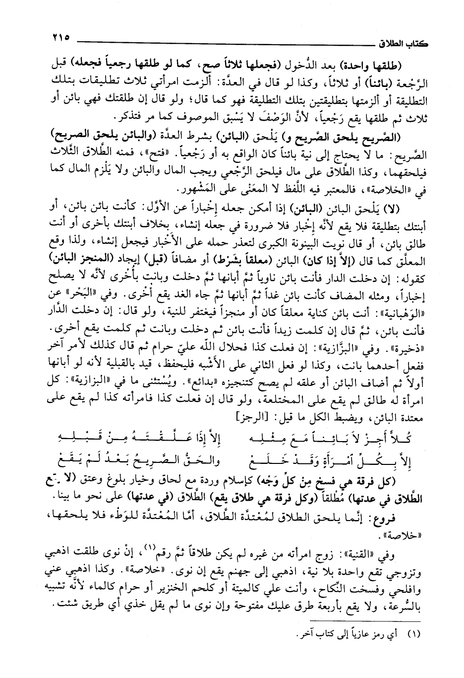 (بائنا) أو ثلاثا، وكذا لو قال في العدة: ألزمت امرأتي ثلاث تطليقات بتلك التطليقة أو ألزمتها بتطليقتين بتلك التطليقة فهو كما قال، ولو قال إن طلقتك فهي بائن أو ثلاث ثم طلقها يقع رجعيا، لان الوصف لا يسبق الموصوف كما مر فتذكر (الصريح يلحق الصريح و) يلحق (البائن) بشرط العدة (والبائن يلحق الصريح) الصريح: ما لا يحتاج إلى نية