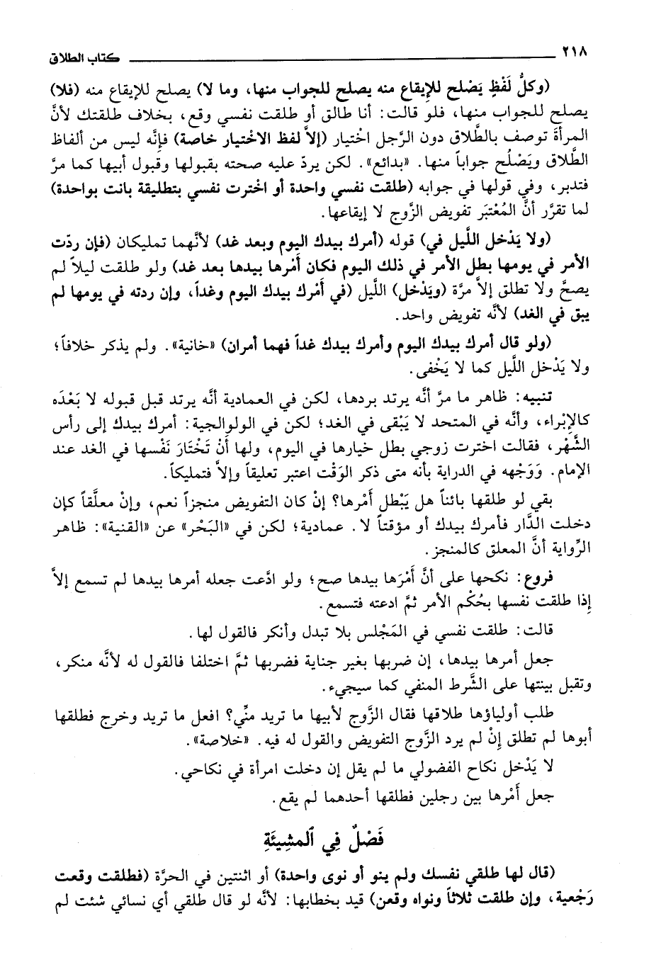 فصل في المشيئة (قال لها طلقي نفسك ولم ينو أو نوى واحدة) أو اثنتين في الحرة (فطلقت وقعت
