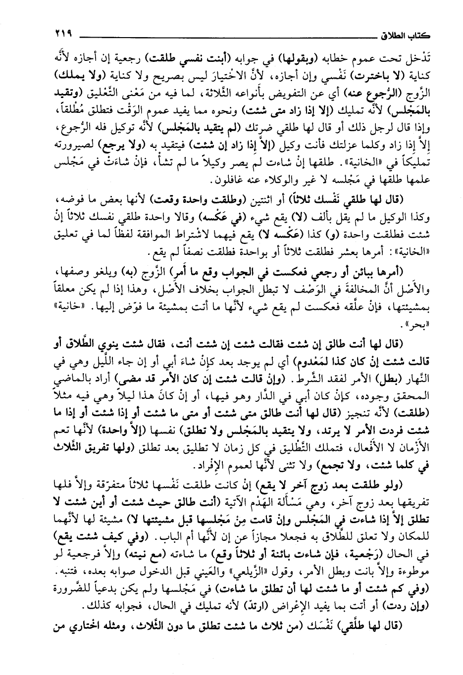 طلقها إن شاءت لم يصر وكيلا ما لم تشأ، فإن شاءت في مجلس علمها طلقها في مجلسه لا غير والوكلاء عنه غافلون.