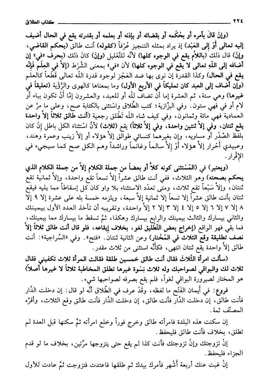 وفي البزازية، كتب الطلاق واستثنى بالكتابة صح، وعلى ما مر عن العمادية فهي مائة وثمانون، وفي كيف شاء الله تطلق رجعية (أنت طالق ثلاثا إلا واحدة يقع ثنتان،