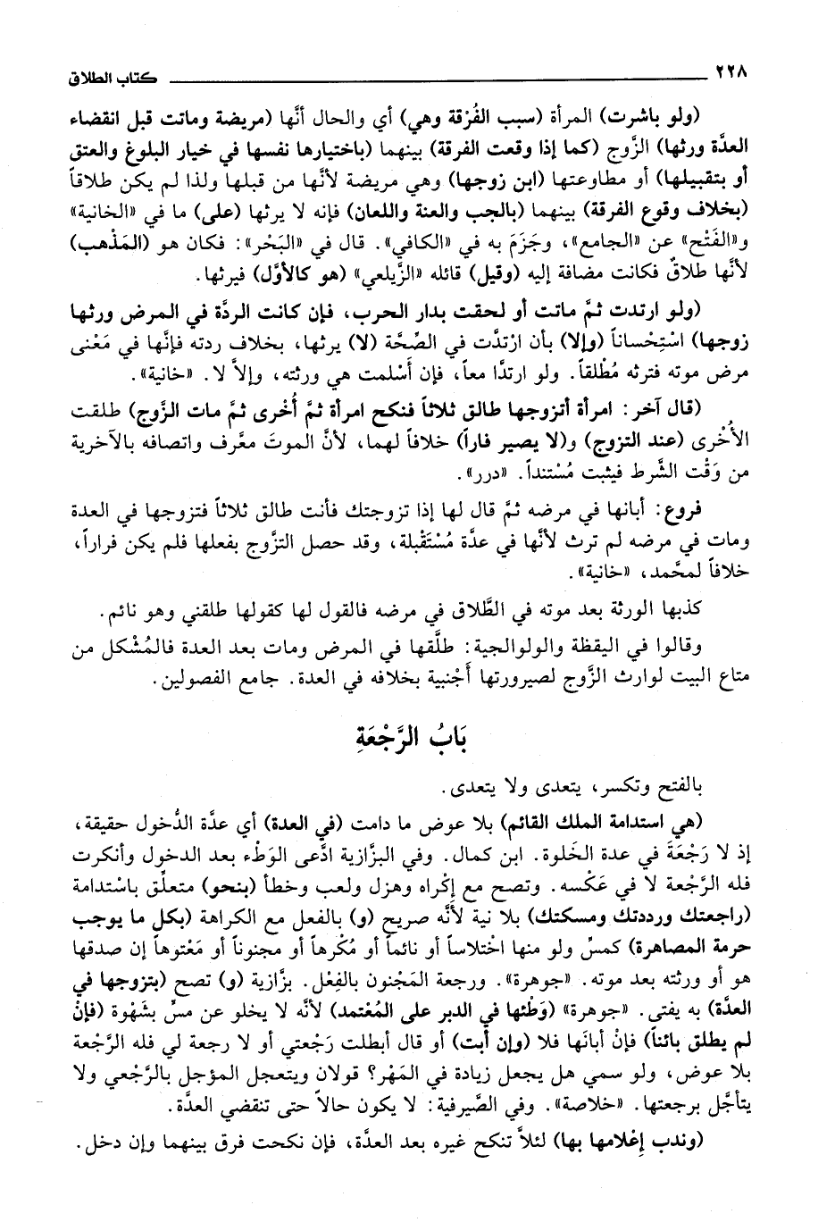باب الرجعة بالفتح وتكسر، يتعدى ولا يتعدى.