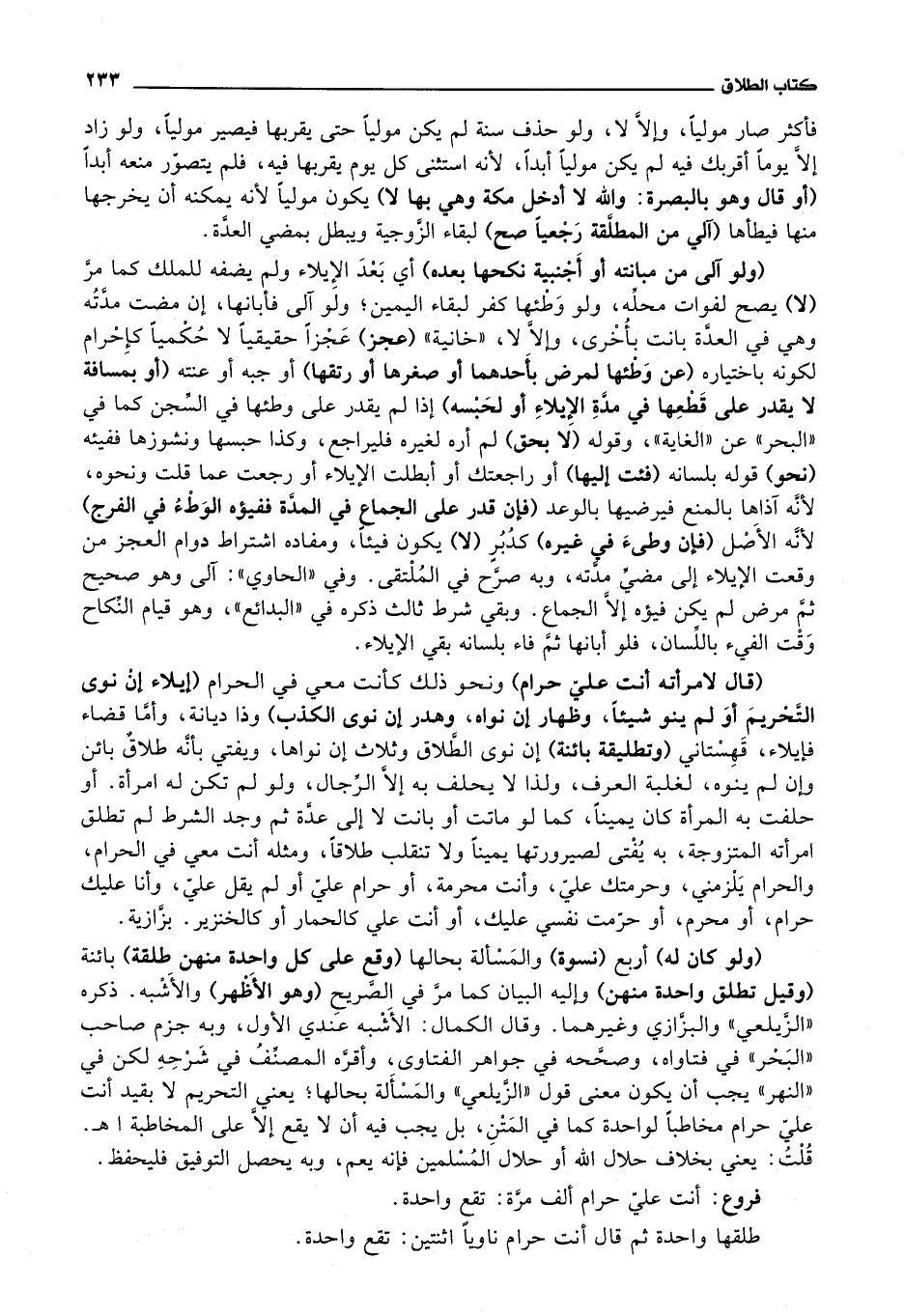 فأكثر صار موليا، وإلا لا، ولو حذف سنة لم يكن موليا حتى يقربها فيصير موليا، ولو زاد إلا يوما أقربك فيه لم يكن موليا أبدا، لانه استثنى كل يوم يقربها فيه، فلم يتصور منعه أبدا (أو قال وهو بالبصرة: والله لا أدخل مكة وهي بها لا) يكون موليا لانه يمكنه أن يخرجها منها فيطأها (آلي من المطلقة رجعيا صح)