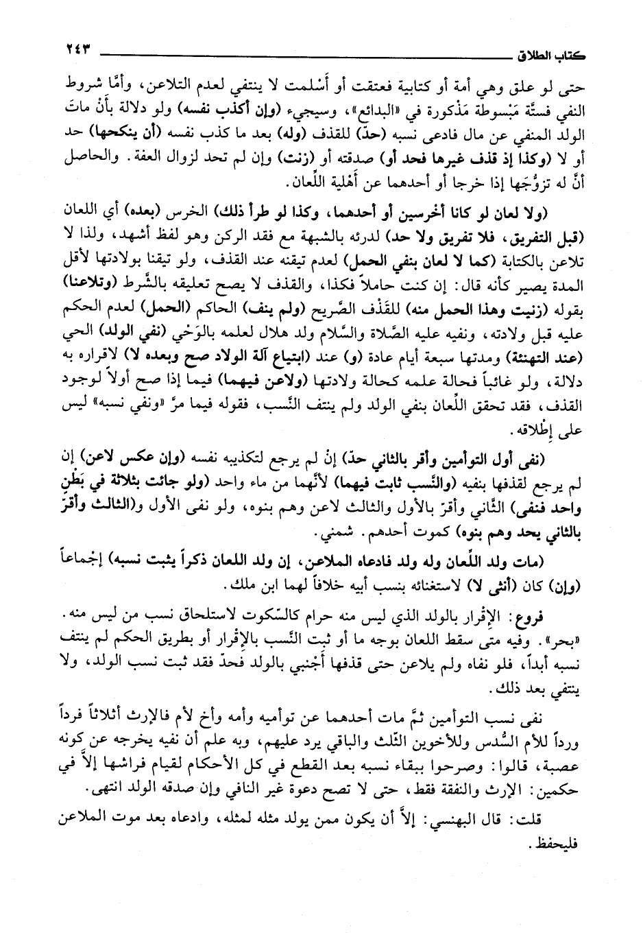 حتى لو علق وهي أمة أو كتابية فعتقت أو أسلمت لا ينتفي لعدم التلاعن، وأما شروط النفي فستة مبسوطة مذكورة في البدائع، وسيجئ